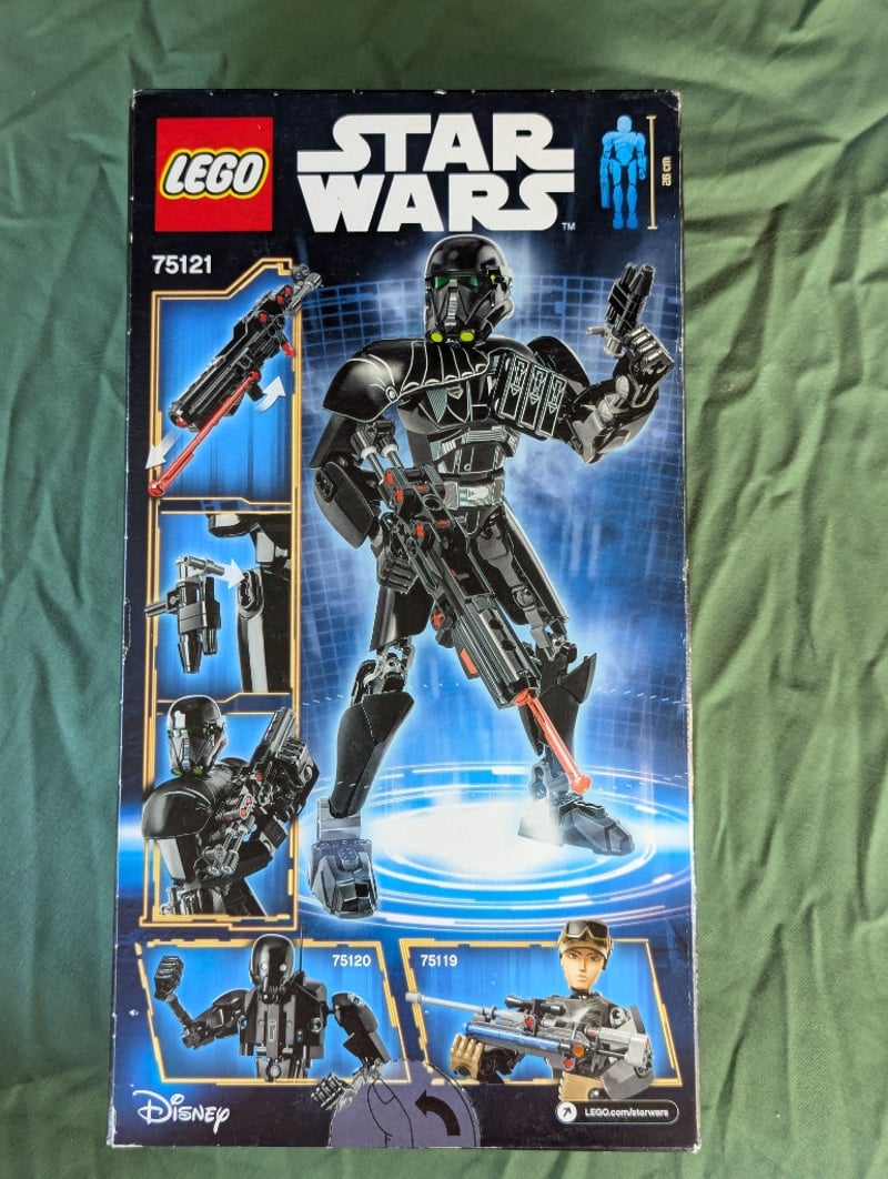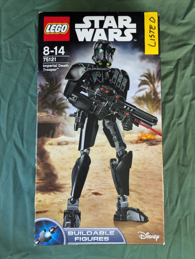 Lego Star Wars Buildable Figure Set 75121 Featuring An Imperial Death Trooper With Articulated Poseable Limbs, Detailed Black Armor Plating With Red Accents, Dual Blaster Weapons, And Authentic Star Wars Character Design. Includes Instruction Manual And Original Packaging With Age Rating 8-14 Years. Disney Licensed Collectible From The Buildable Figures Series.