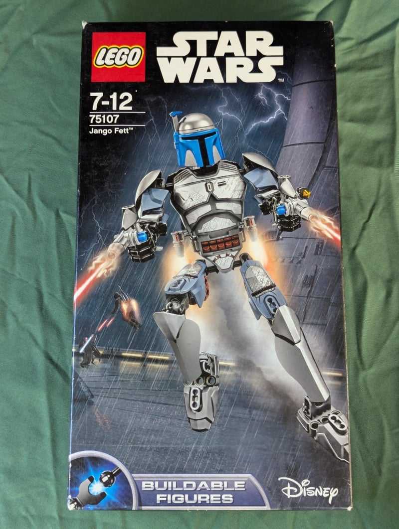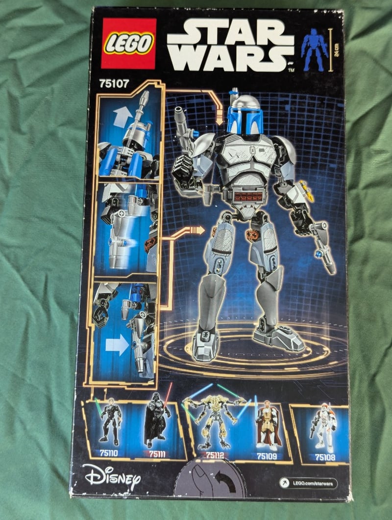 LEGO STAR WARS 75107 JANGO FETT BUILDABLE FIGUREItem Size: Height: 30cm, Width: 19cm, Depth: 12cmLego Star Wars Buildable Figure Set 75107 Featuring Jango Fett In Blue And Silver Armour With Articulated Joints, Blasters, And Jetpack. Includes Minifigure Head. Age Range 7-12 Years. Part Of The Buildable Figures Collection.Condition: Good - Refer To Images584570+368