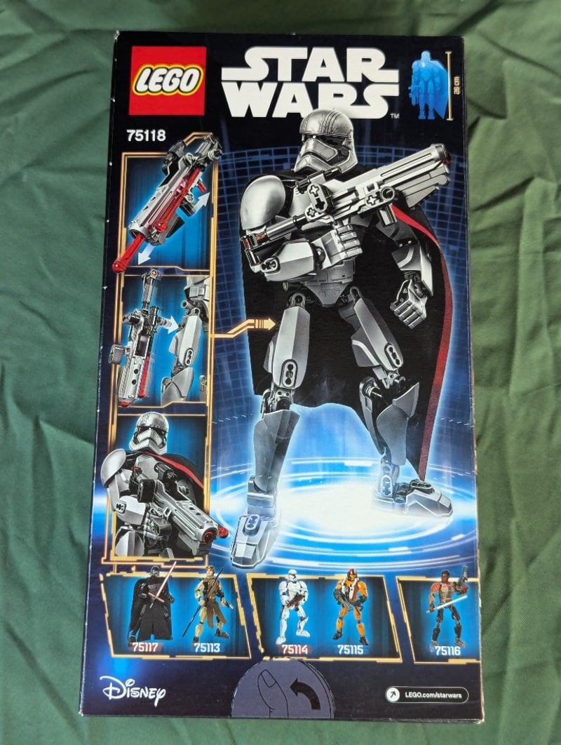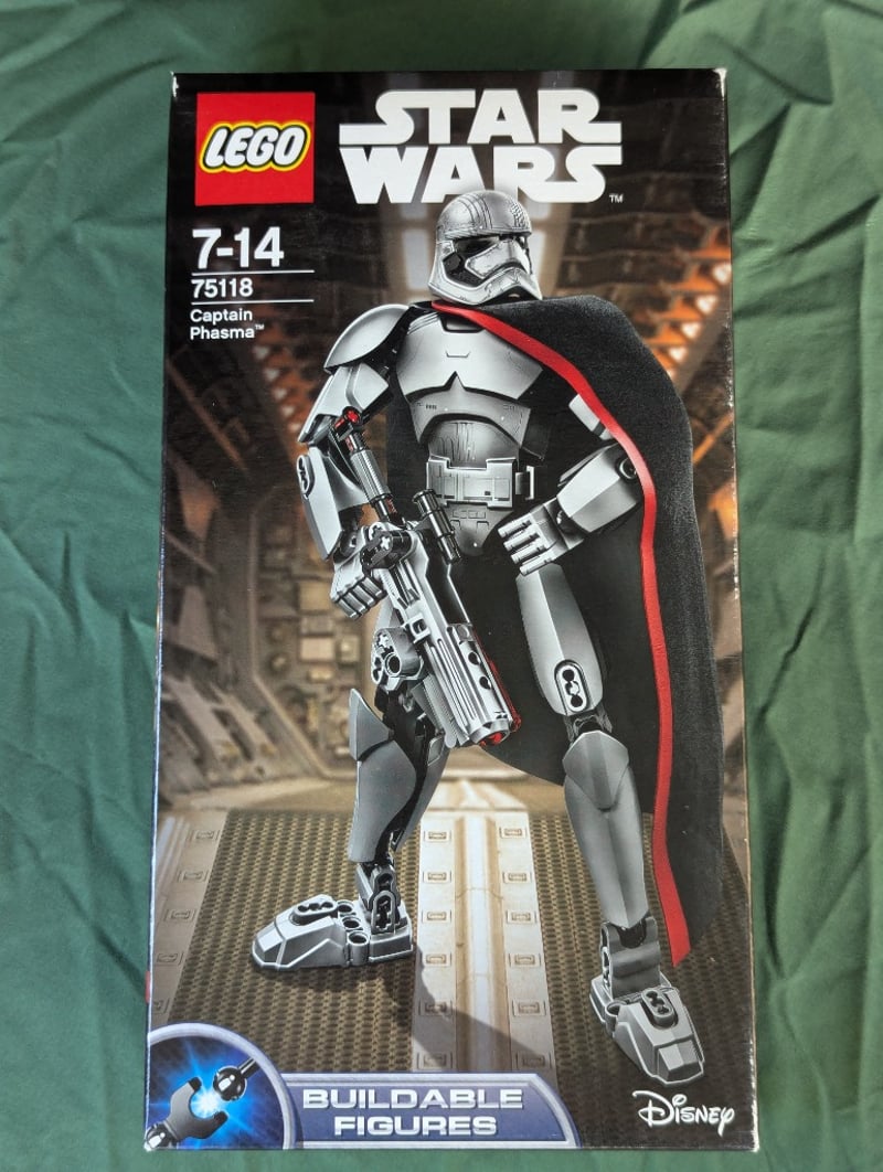 Lego Star Wars Buildable Figure Set 75118 Featuring Captain Phasma From The Force Awakens. Includes Articulated Chrome-Silver Armoured Minifigure With Red Cape, Detailed Blaster Rifle, And Interchangeable Hands. Original Packaging With Age-Appropriate 7-14 Rating Intact.