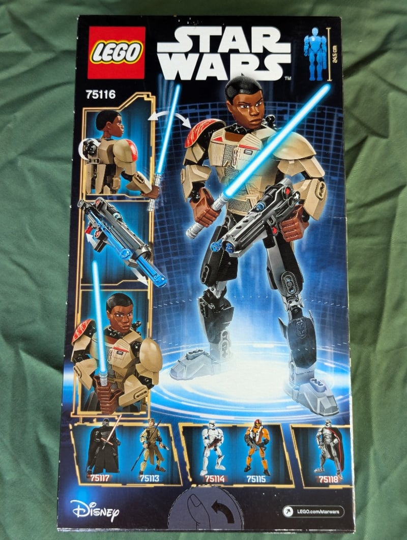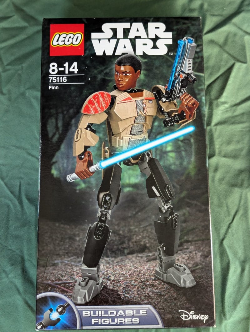 LEGO STAR WARS FINN BUILDABLE FIGURE SET 75116Item Size: Height: 29cm, Width: 19cm, Depth: 9cmLego Star Wars Buildable Figure Set 75116 Depicting Finn Character With Articulated Limbs, Poseable Joints, Authentic Costume Details Including Tan Tunic With Red Shoulder Pauldron And Brown Utility Belt, Equipped With Blue Lightsaber And Blaster Accessories, Includes Alternate Head Piece, Recommended Age 8-14 Years, Part Of Collectible Buildable Figures Series.Condition: Good - Refer To Images584570+372