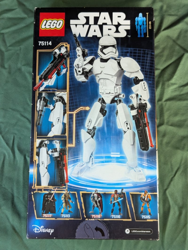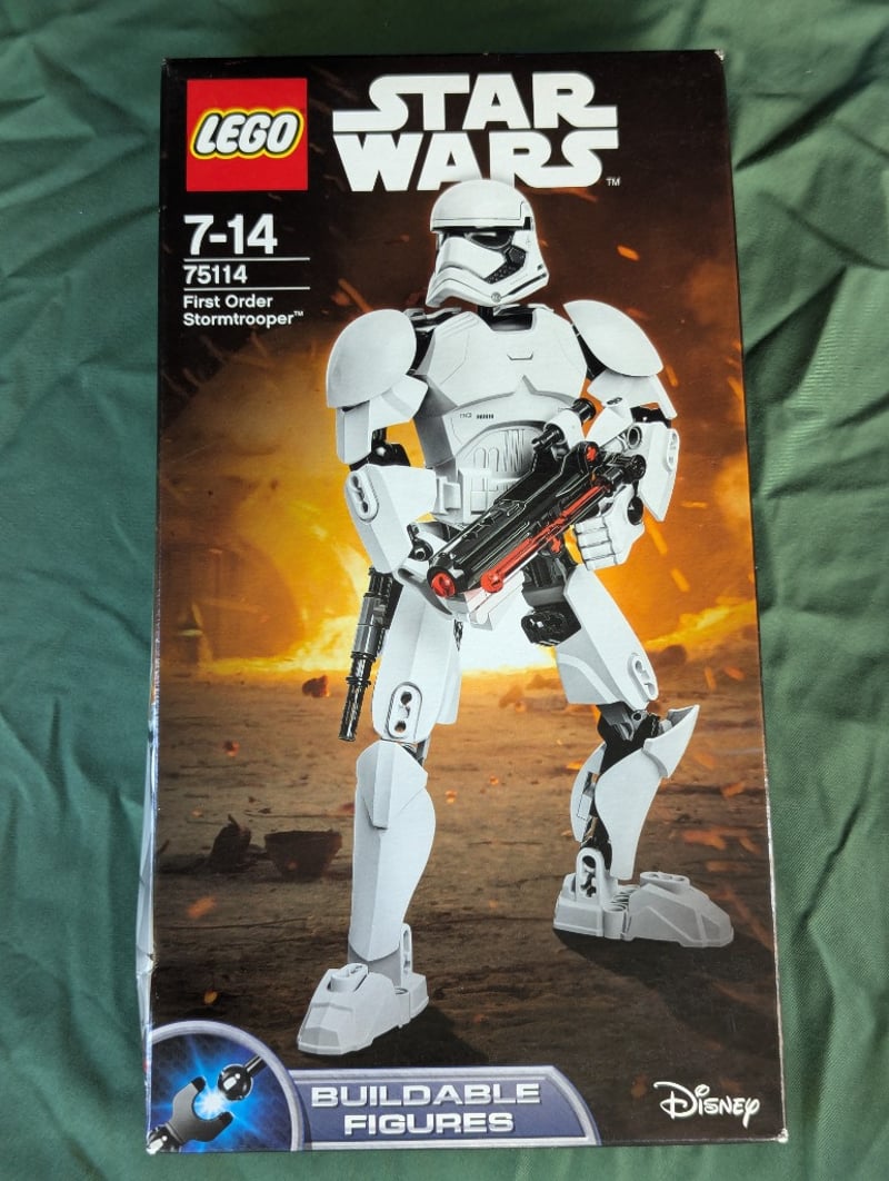 LEGO STAR WARS 75114 FIRST ORDER STORMTROOPER BUILDABLE FIGUREItem Size: Height: 31cm, Width: 19cm, Depth: 12cmLego Star Wars Set 75114 Featuring A First Order Stormtrooper Buildable Figure From The Buildable Figures Collection. This Construction Set Includes Articulated White And Black Armor Pieces With Red Accents, A Detailed Blaster Rifle, And Poseable Joints For Dynamic Display. Suitable For Ages 7-14.Condition: Good - Refer To Images584570+374