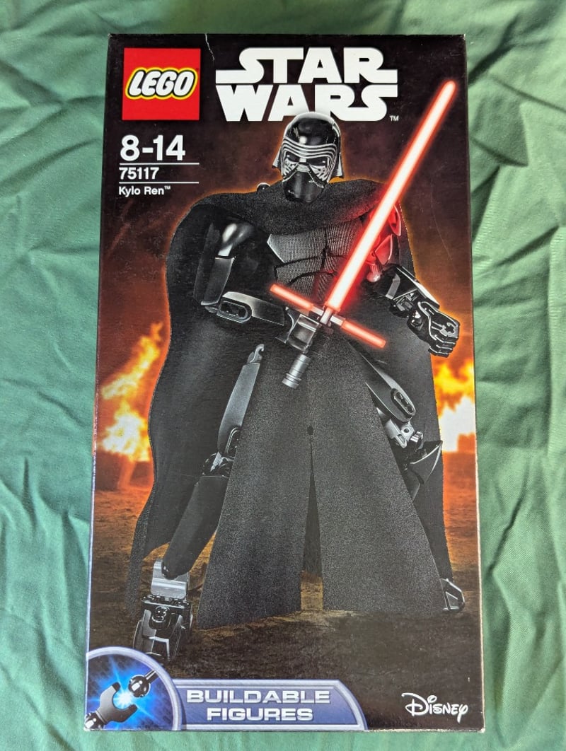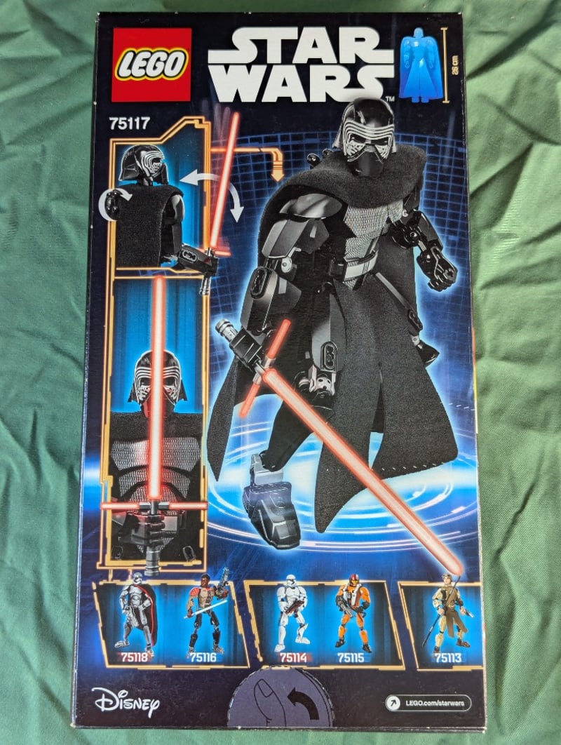 LEGO STAR WARS KYLO REN BUILDABLE FIGURE SET 75117Item Size: Height: 31cm, Width: 19cm, Depth: 10cmLego Star Wars Buildable Figure Set 75117 Featuring Kylo Ren With Poseable Joints, Fabric Cape, And Light-Up Lightsaber. Includes Interchangeable Helmet And Alternate Head Piece. Age Range 8-14 Years.Condition: Good - Refer To Images584570+375