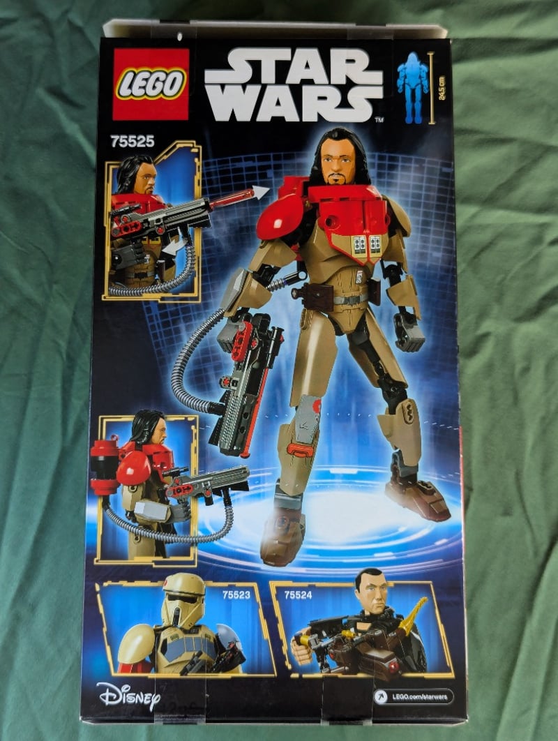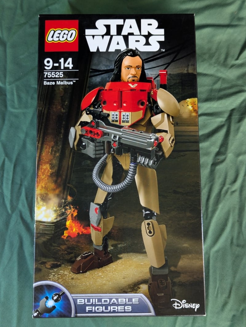 Lego Star Wars Buildable Figures Set 75525 Featuring Baze Malbus Character With Articulated Red Armor Plating, Tan Bodysuit, Poseable Limbs, And Detachable Weapon Accessory. Original Packaging With Age-Appropriate Rating 9-14 Years. Includes Construction Elements And Display Stand Capability.