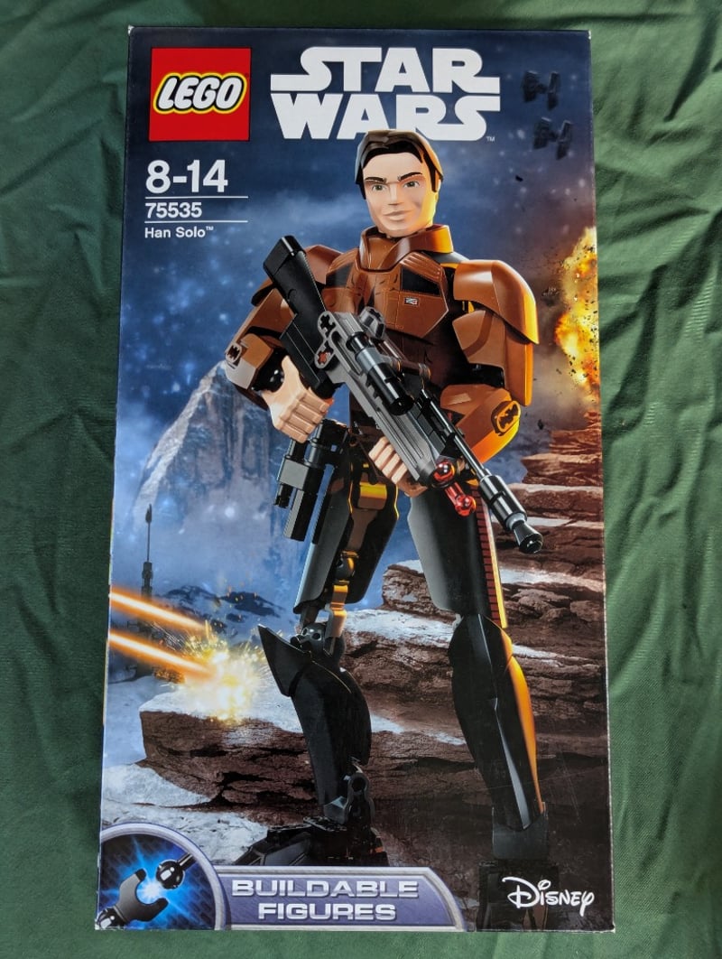 LEGO STAR WARS HAN SOLO BUILDABLE FIGURE SET 75535Item Size: Height: 32cm, Width: 19cm, Depth: 12cmLego Star Wars Buildable Figure Set 75535 Featuring Han Solo In Brown Flight Suit With Articulated Joints, Blaster Rifle, And Accessories. Includes Blue Minifigure Scale Reference. Age Range 8-14 Years.Condition: Good - Refer To Images584570+379