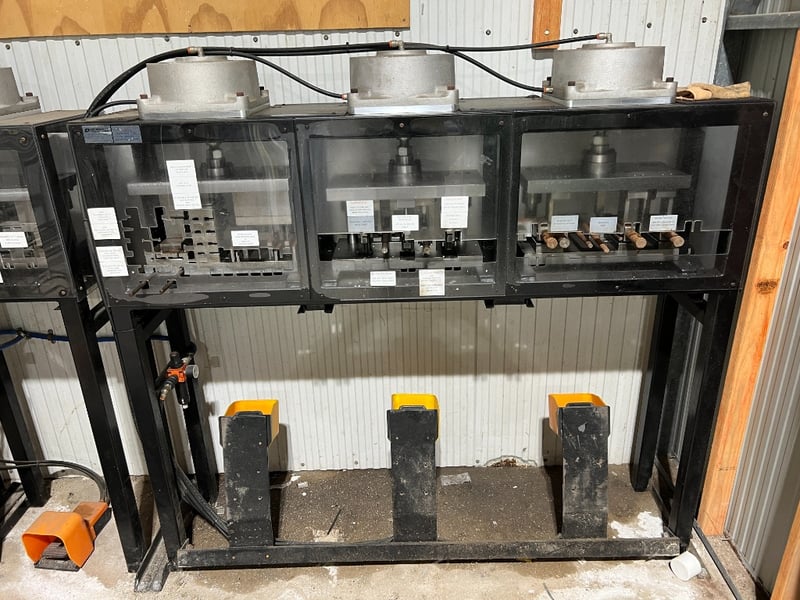 Carinya Classic High Performance Sliding Door and Window Pneumatic Punching Machine This is a 3-Station Bench-Mounted Unit with pneumatic foot pedals. Each station is dedicated to specific profiles within the Carinya 50mm system. Functions: Stile & Rail Drainage: Punches the "weep holes" for water drainage. Interlock & Lock Stile Machining: Prepares the slots for locks and meeting stiles. Frame Assembly: Punches the screw flutes for joining the head, sill, and jambs. Sold as is Location: #MACKAY Contact Kyle Haywood | Ph 0487 020 888 | [email protected]
