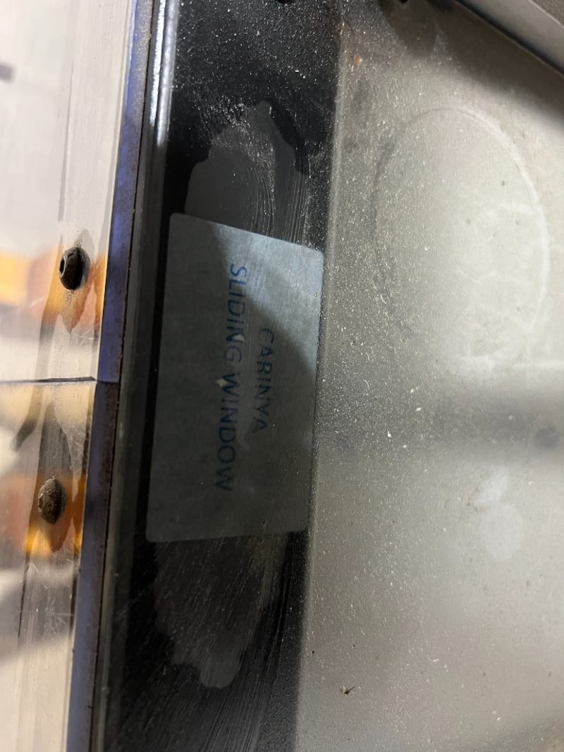 Custom pneumatic punch press set up specifically for Carinya sliding window components, most likely punching/slotting aluminium window sections (locks, drains, handle cut-outs, etc.).
