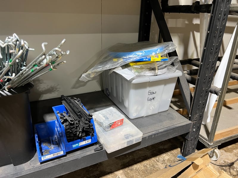 Storage Solutions: All blue and clear plastic storage bins shown are included in the lot.