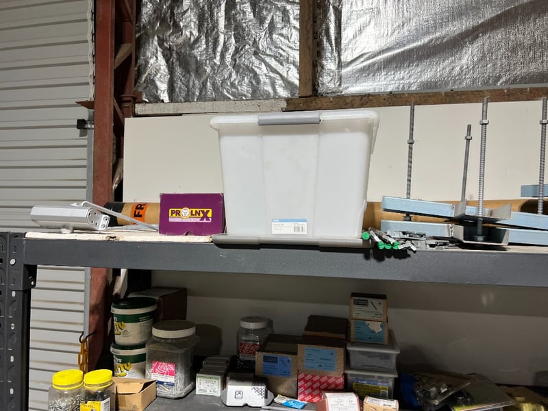 Industrial Heavy-Duty Shelving Unit & Large Inventory of Window Fabrication Hardware
