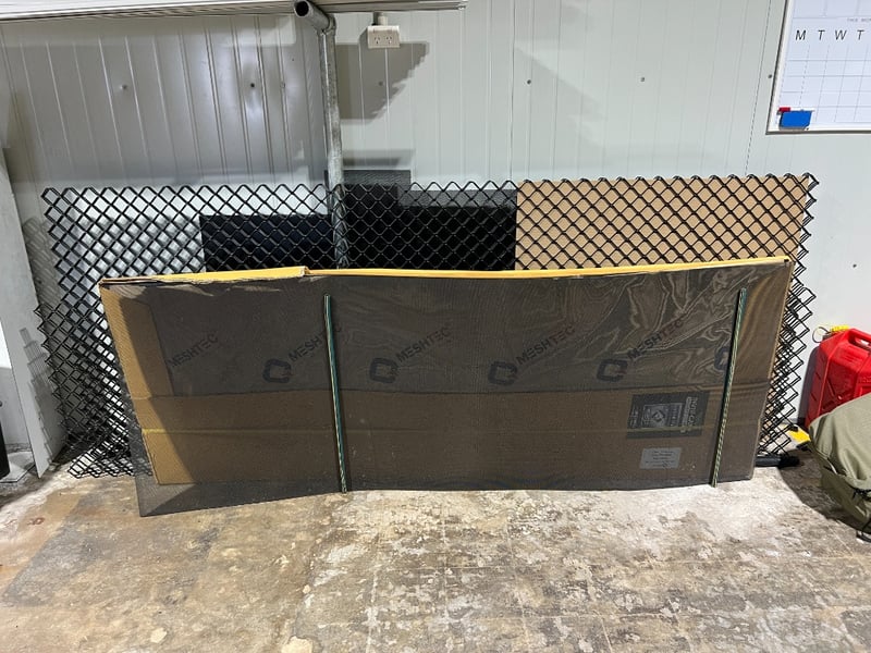 Bulk Quantity Security Screen Mesh & Aluminium Diamond Grille Sheets 316 Marine Grade Stainless Steel Mesh (Woven) Type: High-tensile, 316-grade stainless steel woven wire mesh. Finish: Black powder-coated (epoxy) for corrosion resistance and high visibility. Quantity: Multiple large sheets (approx. 2400mm x 1200mm standard sizing). Application: Used in premium security systems like Invisi-Gard or Screenguard. Provides security without obstructing the view. 2. 7mm Aluminium Diamond Grille Sheets Type: Heavy-duty expanded aluminium security grille. Thickness: 7mm. Finish: Black powder-coated. Sold as One Lot Sold as is Location: #MACKAY Contact Kyle Haywood | Ph 0487 020 888 | [email protected]