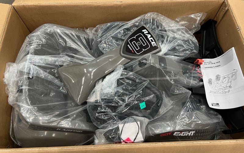 Children’s ride on go-kart, Honey Joy, TQ10105AU/JE1199, includes; charging cable, remote control, wheels and rear diffuser, black/ grey colour, load capacity of 30kg, suitable for ages 3+