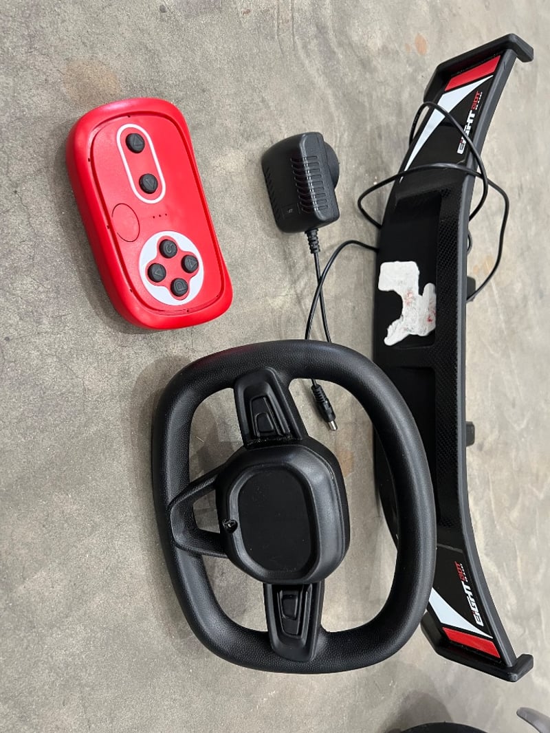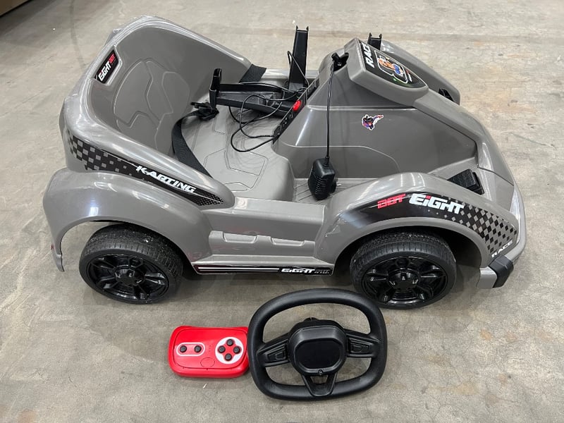 Children’s ride on go-kart, Honey Joy, TQ10105AU/JE1199, includes; charging cable, remote control, wheels and rear diffuser, black/ grey colour, load capacity of 30kg, suitable for ages 3+