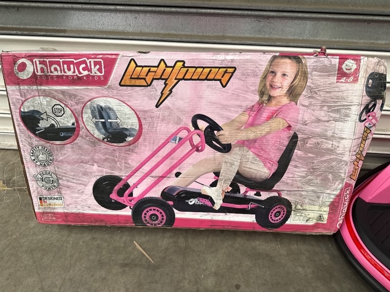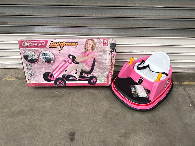 Kids Ride on toys, electric kids ride on bumper car and lightning pedal go kart. Brands include Hauck. Suitable for ages 4-8.