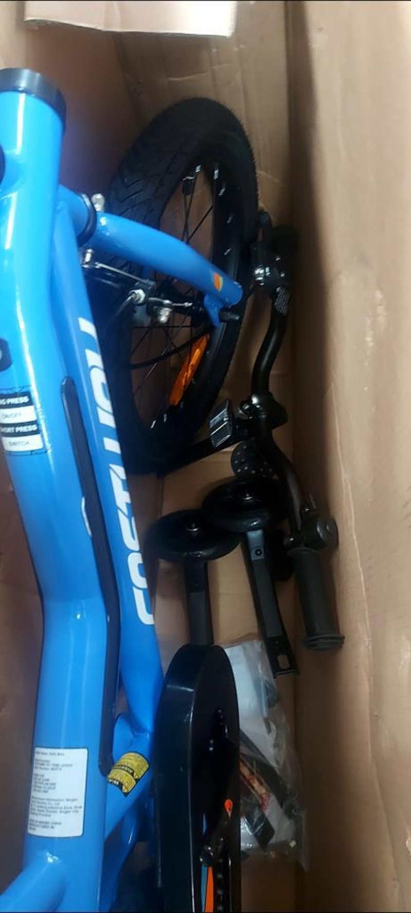 Kids bike, Costway, TS10184NY-16, blue colour, includes; pedals, training wheels, handlebar, saddle and instructions