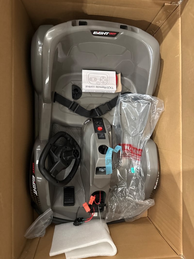 Children’s ride on Car, Honey Joy, TQ10105AU-BK, includes; charging cable, remote control, wheels and rear diffuser, black/ grey colour, load capacity of 30kg, suitable for ages 3+.