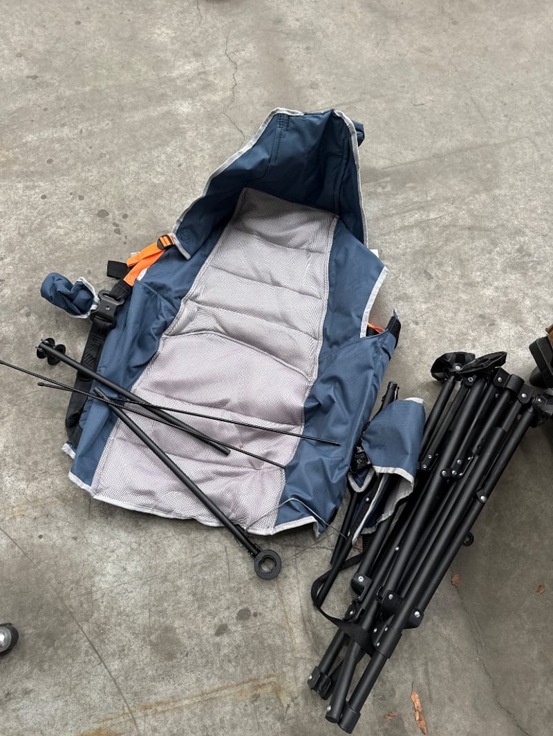 Assorted Furniture, including Rocking Chair, Camping Chairs and cushions, Models include NP11567BE and HE62861DK ect. Quantity: 3 items, sold as lot.