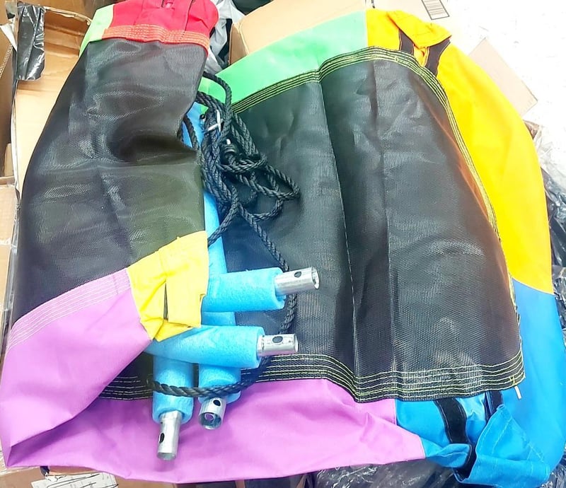 Assorted children play equipment, including; inflatable trampoline, teepee, play ground set etc, brands include; roborock, etc