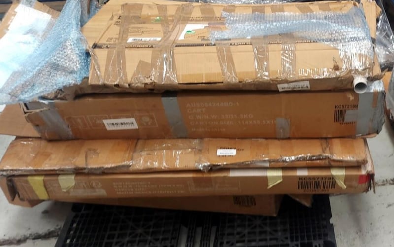 Assorted pallet of flat pack furniture. Different models, styles and colours