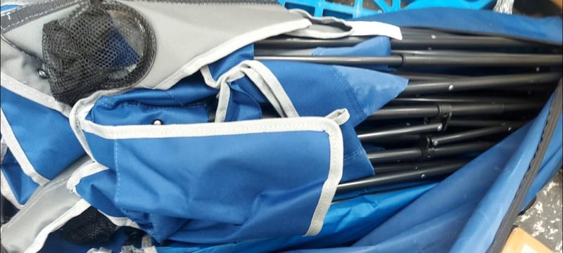 Assorted pallet of mixed goods.Contents include pizza oven, camping tent, fitness equipment and more. Sold as lot