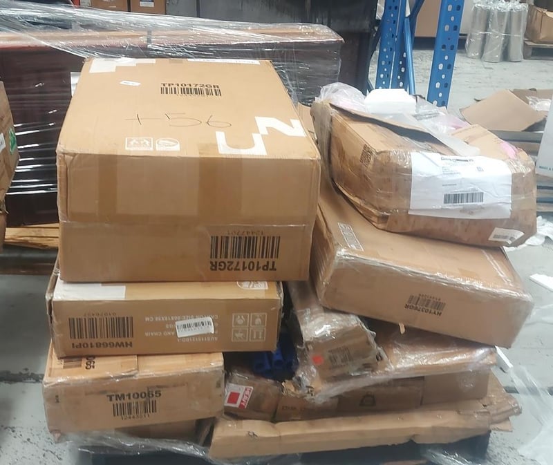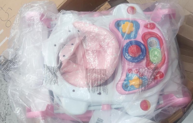 Contents include a baby walker, kids playset, flat pack furniture and more.