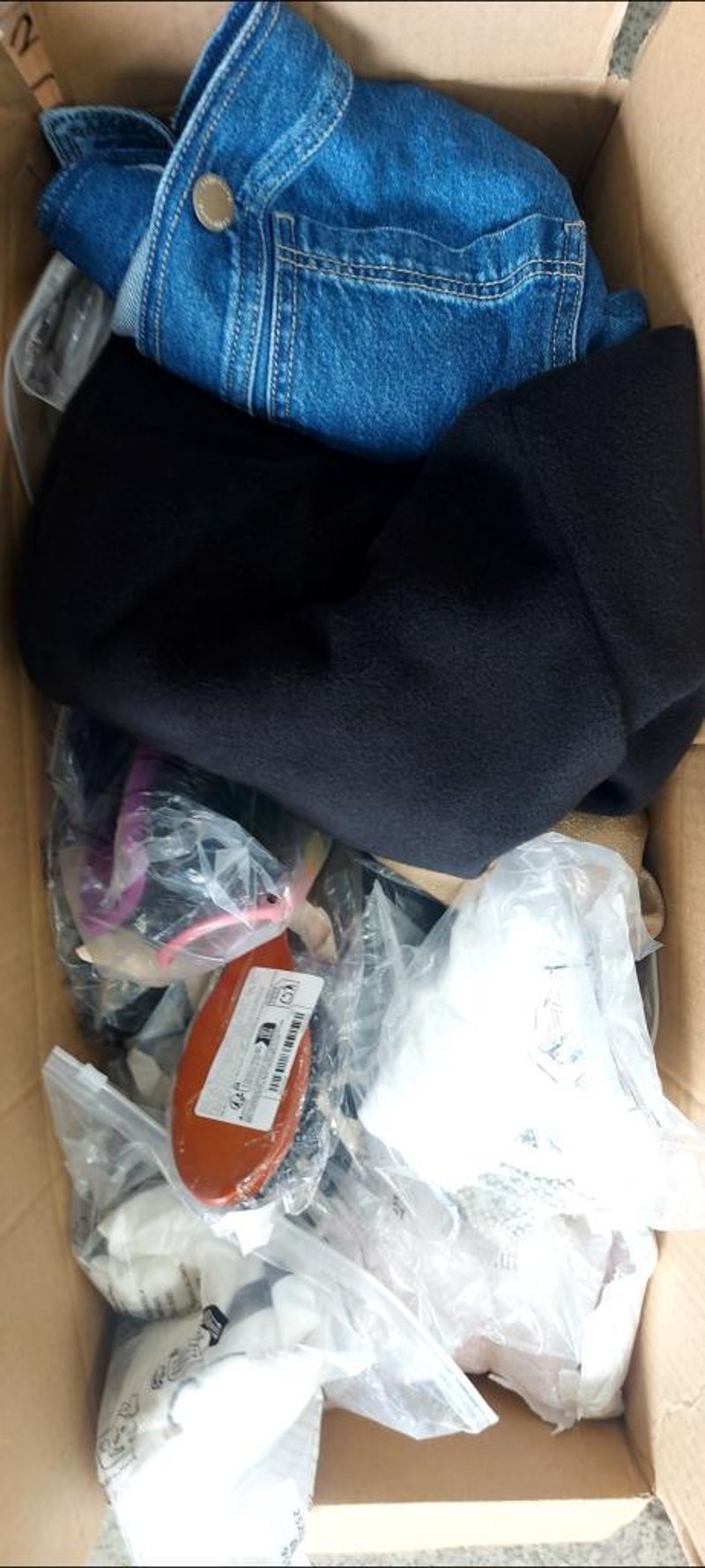 Clothes, assortment of various clothing items, includes denim jacket, fleece jacket ect