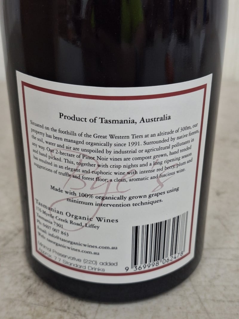 X12 2019 Tasmanian Organic Wines Bye's Pinot NoirSOLD AS LOT