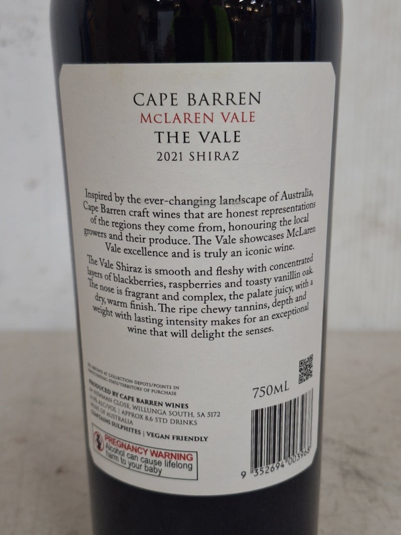 X6 2021 Cape Barren The Vale ShirazSOLD AS LOT
