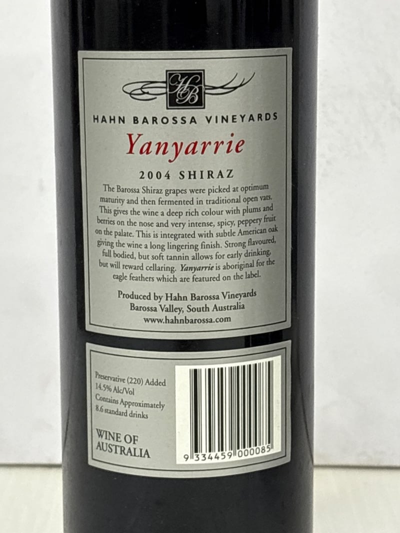 Barossa Valley Yanyarrie Shiraz, 2004, 750ml, 14.5% alcohol, qty 6