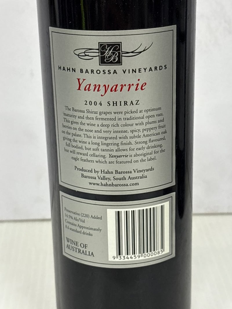 Barossa Valley Yanyarrie Shiraz, 2004, 750ml, 14.5% alcohol, qty 6