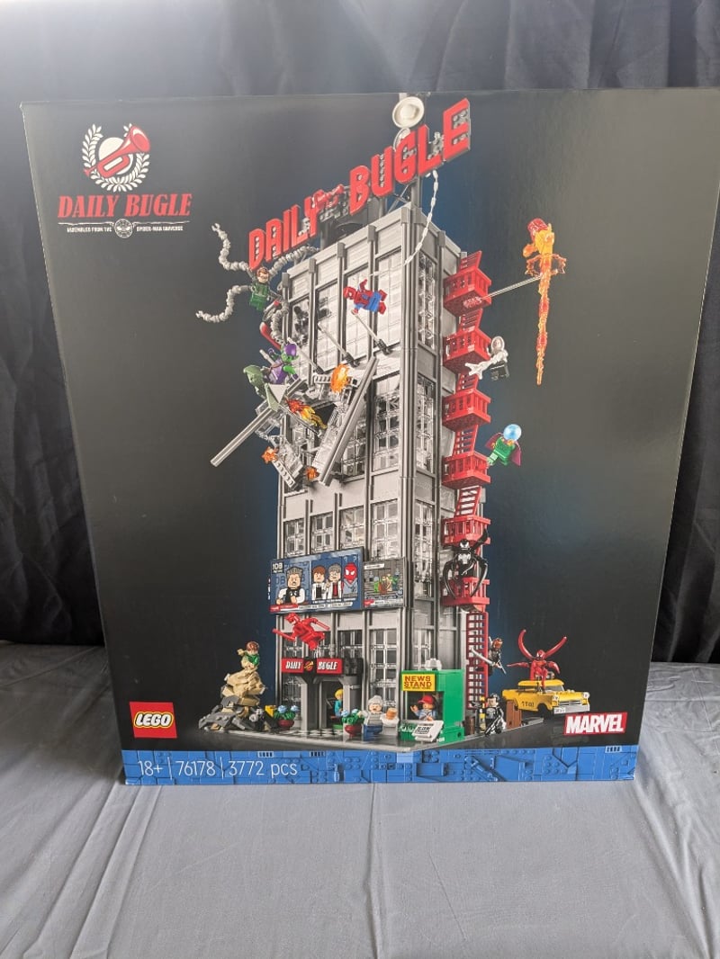 Unopened Lego Marvel Daily Bugle Set #76178 Featuring 3,772 Pieces. Highly Detailed Modular Skyscraper With Iconic Daily Bugle Signage, Multiple Interior Rooms With Minifigure Scenes, Helicopter Landing Pad, And Accompanying Marvel Character Figures Including Spider-Man And Villains. Includes Architectural Blueprint Details And Street-Level Diorama Elements With Yellow Taxi Cab