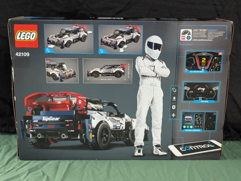 LEGO TECHNIC 42109 APP-CONTROLLED TOP GEAR RALLY CARLego Technic Set 42109 Featuring An App-Controlled Top Gear Rally Car With Bluetooth Connectivity, Four-Wheel Drive Functionality, And Motorized Components. Includes Detailed White And Black Rally Livery With Red Accents, Working Headlights, Functional Suspension, And A Dedicated Mobile Control InterfaceCondition: Good - Refer To Images584571+774