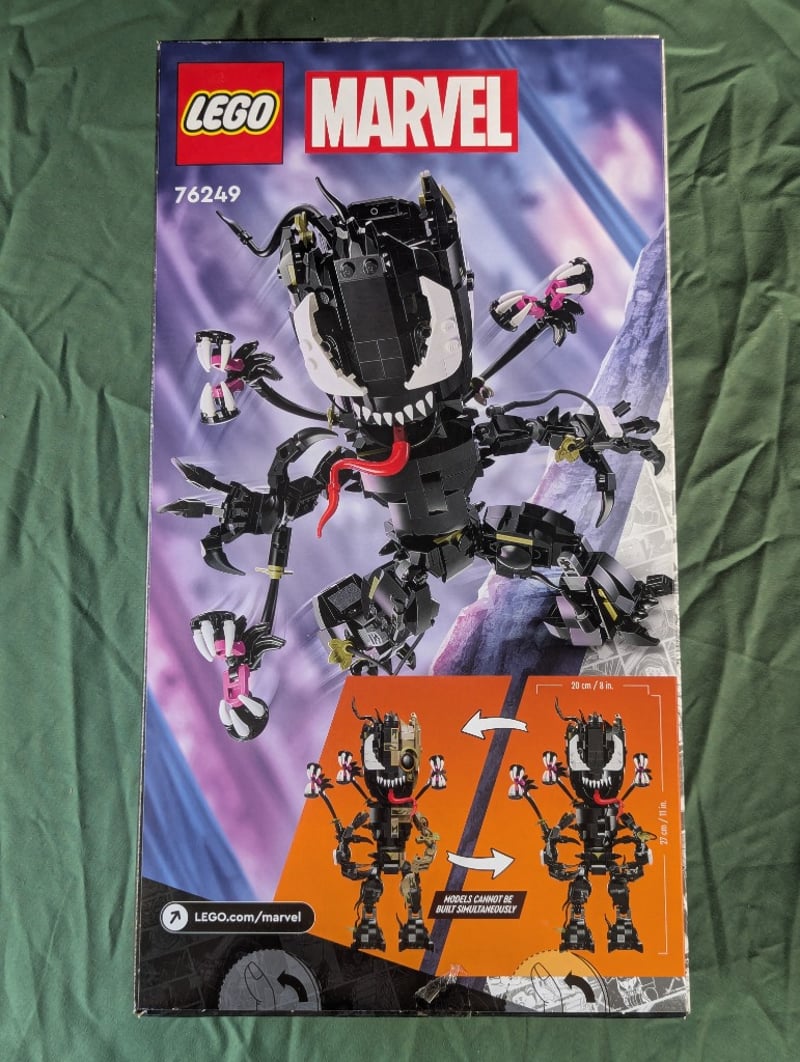 LEGO MARVEL VENOMISED GROOT SET 76249Lego Marvel Buildable Figure Set 76249 Featuring Venomised Groot With Articulated Limbs, Interchangeable Hands, And Multiple Minifigures Including Symbiote Characters. Includes Instruction Manual And Original Packaging With Fiery And Cosmic-Themed Graphics.Condition: Good - Refer To Images584571+785