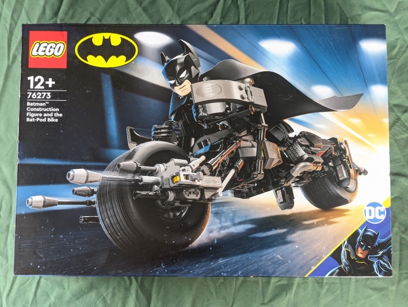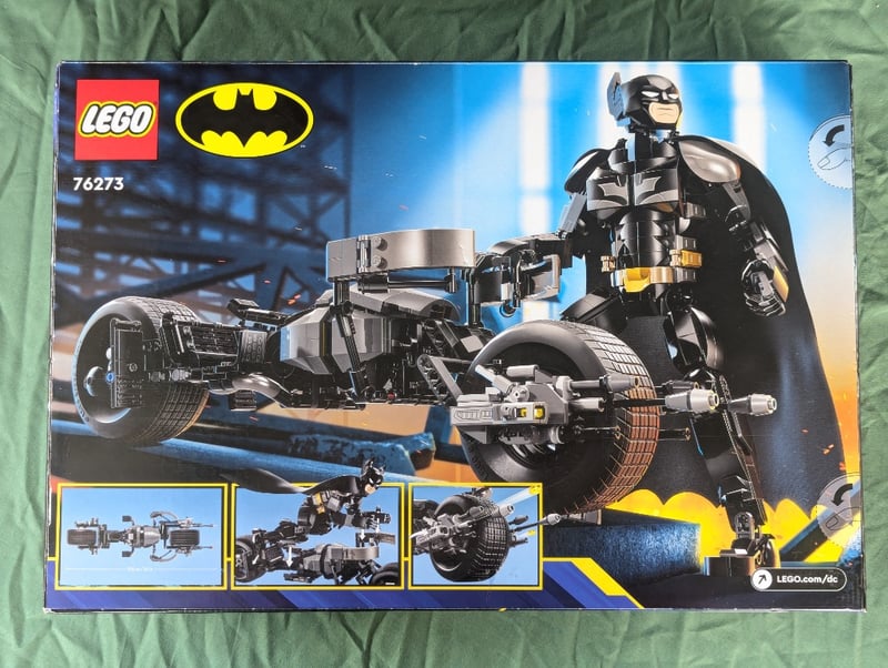 Lego Batman Set 76273 Featuring A Detailed Batman Construction Minifigure And The Iconic Bat-Pod Motorcycle. The Set Includes Articulated Batman Figure With Cape And Cowl, Plus A Highly Detailed Black And Metallic Grey Motorcycle With Functional Wheels, Exhaust Pipes, And Authentic Design Elements. Suitable For Ages 12+. Includes Instruction Manual And Original Packaging With Vibrant Graphics Showcasing The Vehicle And Character.