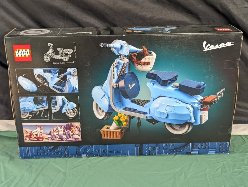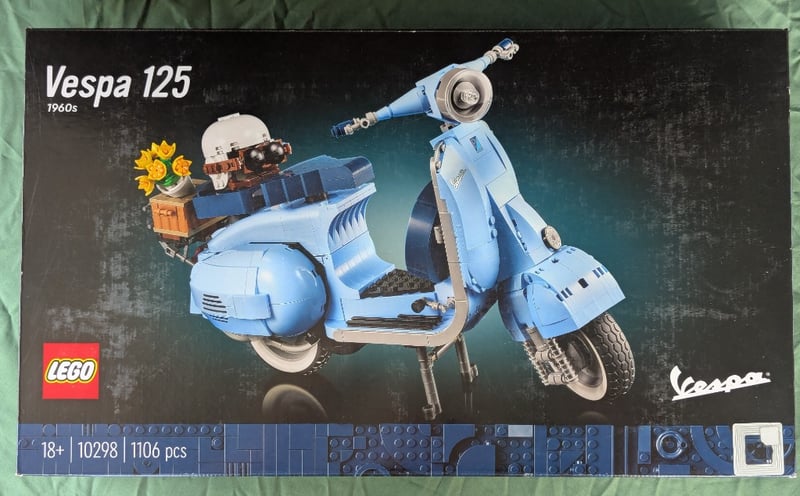 LEGO VESPA 125 1960S SCOOTER SET #10298Lego Icons Vespa 125 1960S Scooter Model Featuring 1106 Pieces, Light Blue And Cream Colourway With Detailed Sidecar, Working Kickstand, And Authentic Period Accessories Including Flower Basket And Vintage-Inspired Display Base. Adult Collector Set (18+) With Instruction Manual.Condition: Good - Refer To Images584571+789