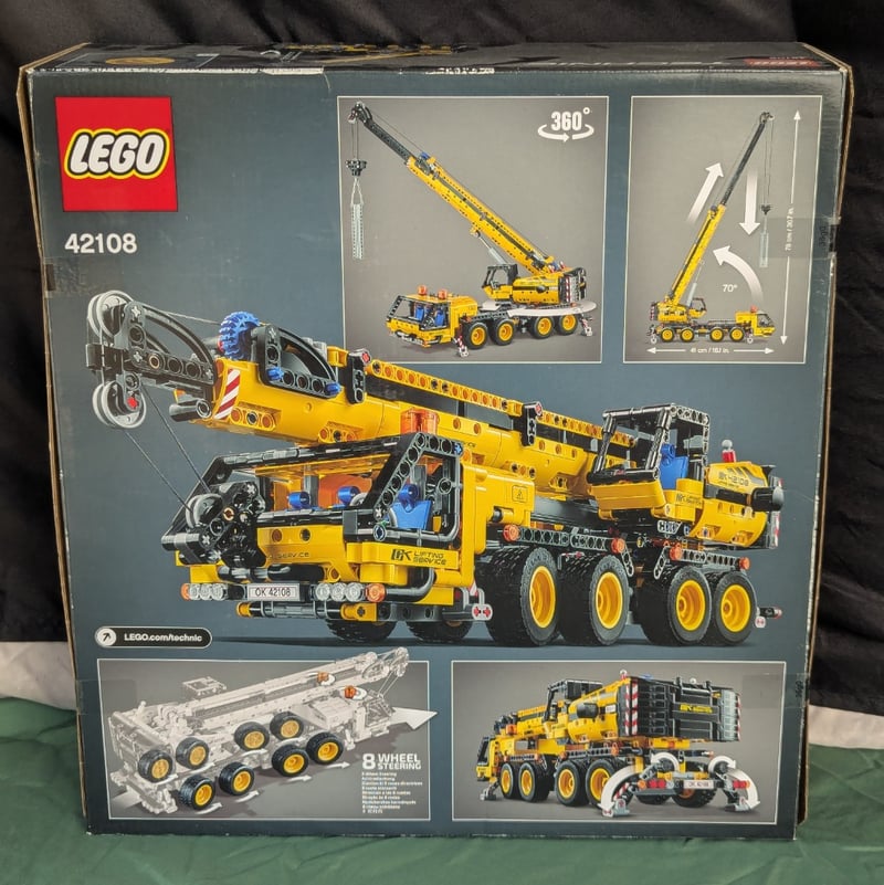 LEGO TECHNIC MOBILE CRANE SET 42108Lego Technic Mobile Crane (Set 42108) Featuring A Detailed Yellow And Black Mobile Crane With 360-Degree Rotating Boom, 8-Wheel Steering Chassis, And Accompanying Support Vehicle. The Set Includes Articulated Boom With Extendable Sections, Functional Winch Mechanism, And Detailed Cab With Minifigure Operators. Demonstrates Advanced Mechanical Engineering With Working Hydraulic Functions And Realistic Construction Vehicle Proportions.Condition: Good - Refer To Images584571+796
