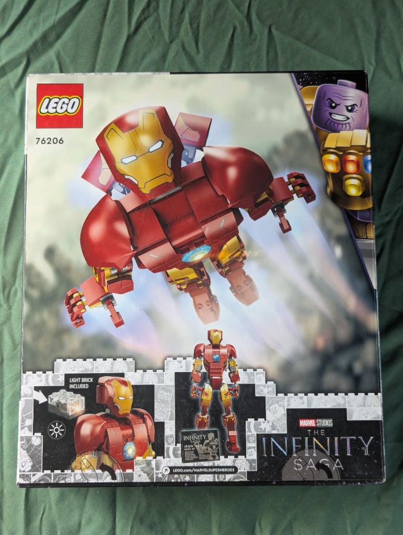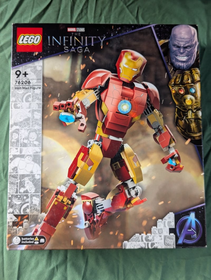 LEGO MARVEL INFINITY SAGA IRON MAN FIGURE SET 76206Lego Marvel Studios Infinity Saga Iron Man Buildable Figure Set 76206, Featuring Articulated Red And Gold Armoured Suit With Light Brick Included, Minifigure Representation, And Thanos Gauntlet Display Element. Age 9+ Construction Set With Batteries Included. Complete With Original Packaging Showing Front And Back Box Art.Condition: Good - Refer To Images584571+807