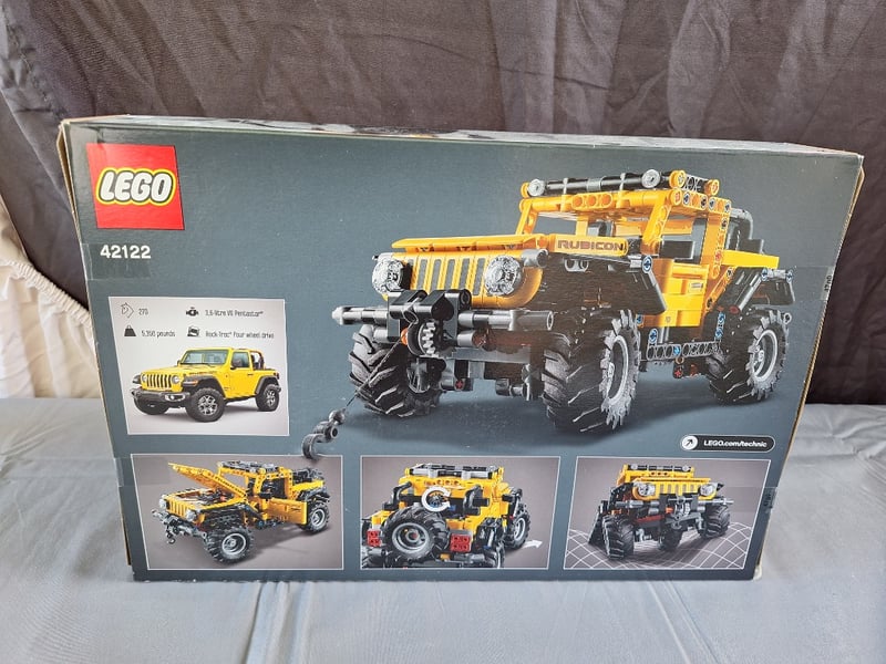 LEGO TECHNIC 42122 JEEP WRANGLER RUBICON BUILDING SETLego Technic Set 42122 Featuring A Detailed Yellow And Black Jeep Wrangler Rubicon With Functional Suspension, Articulated Steering, And Removable Roof Rack. Includes 1,260+ Pieces With Motorized Capabilities. Original Sealed Box With Complete Packaging And Instruction Materials. Age Rating 9+.Condition: Good - Refer To Images584571+813