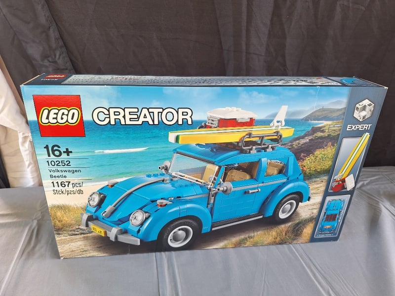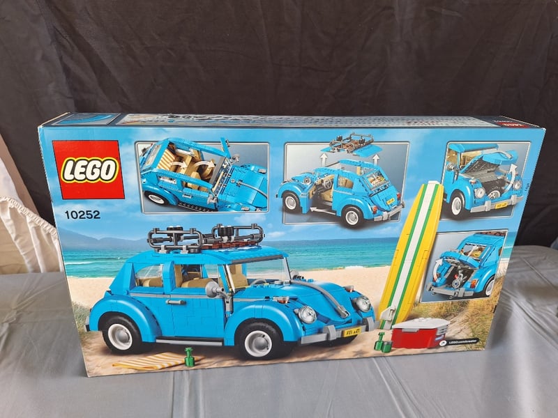 LEGO CREATOR EXPERT VOLKSWAGEN BEETLE SET 10252Lego Creator Expert Series Volkswagen Beetle (Set 10252) Featuring 1167 Pieces. Blue Classic Vw Beetle With Opening Doors, Detailed Interior, Removable Roof Panel, And Includes Yellow Surfboard Accessory. Unopened Factory Sealed Box With Original Packaging Intact. Age 16+ Recommended. Collectible Building Set Depicting Iconic Automotive Design With Functional Moving Parts And Authentic Period Details.Condition: Good - Refer To Images584571+822
