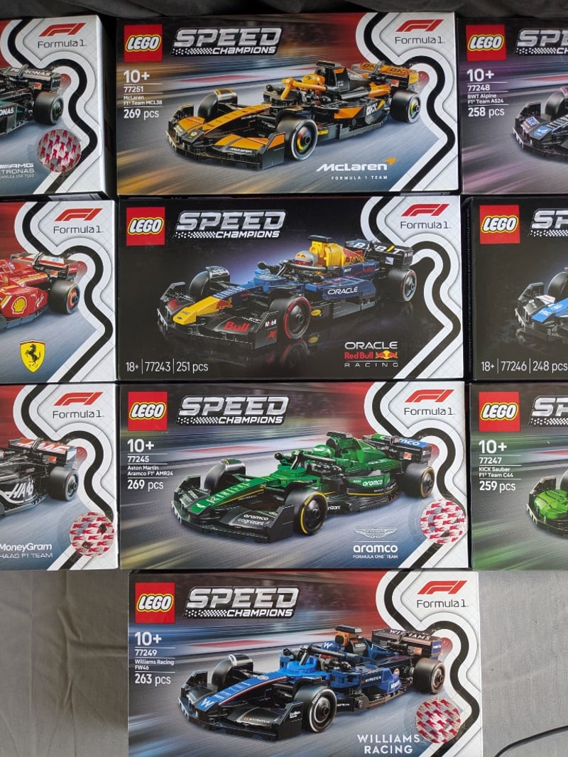 Comprehensive Collection Of 10 Lego Speed Champions Formula 1 Sets Featuring Iconic F1 Teams And Vehicles. Includes Mercedes-Amg Petronas, Mclaren, Ferrari, Red Bull Racing, Oracle Racing, Alpine F1 Team, Kick Sauber, Williams Racing, Haas F1 Team, And Moneygram Haas F1 Team Models. Sets Range From 200-275 Pieces With Age Recommendations Of 10+ And 18+. Original Sealed Boxes In Excellent Condition With Vibrant Graphics And Official F1 Branding. Ideal For Formula 1 Enthusiasts And Lego Collectors