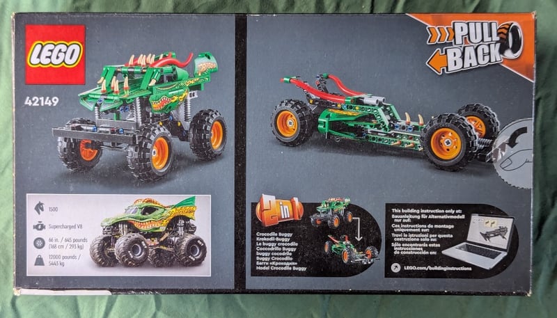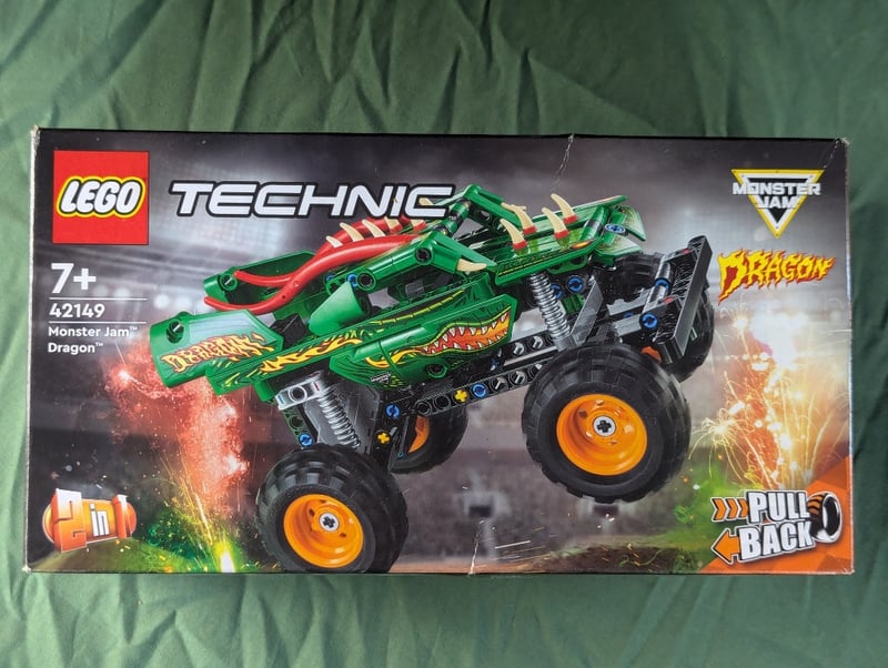 LEGO TECHNIC MONSTER JAM DRAGON PULL-BACK VEHICLE SET 42149Lego Technic Set 42149 Featuring The Monster Jam Dragon Monster Truck With Pull-Back Motorized Function. Green And Red Dragon-Themed Design With Articulated Suspension, Large Orange Wheels, And Detailed Mechanical Components. Includes 1500 Pieces With Supercharged V8 Engine Detail. Original Sealed Packaging With Instruction Manual. Suitable For Ages 7+.Condition: Good - Refer To Images584571+833