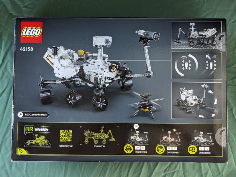LEGO TECHNIC NASA MARS ROVER PERSEVERANCE SET 42158Lego Technic Set 42158 Featuring The Nasa Mars Rover Perseverance. This Advanced Building Set Includes A Detailed White And Black Rover With Articulated Suspension, Rotating Wheels, Extendable Robotic Arm With Drill Attachment, And A Separate Helicopter Drone Model. The Set Incorporates Motorized Functions, Realistic Engineering Details, And Augmented Reality Interactive Experience Capabilities. Includes Instruction Manual And Ar Scanning Features For Educational Exploration And Environmental ThCondition: Good - Refer To Images584571+835