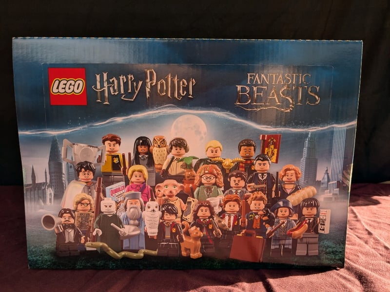 Sealed Lego Harry Potter And Fantastic Beasts Minifigure Collection Box Featuring Approximately 22 Detailed Character Minifigures Including Wizards, Magical Creatures, And Iconic Characters From Both Franchises. Original Packaging With Full Colour Artwork Depicting Characters Against Moonlit Cityscape Backdrop.