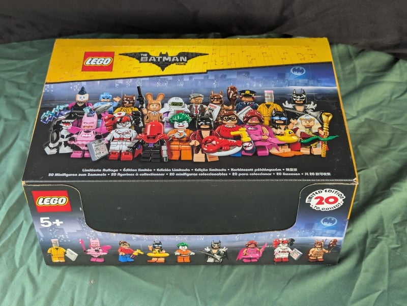 LEGO THE BATMAN MOVIE LIMITED EDITION MINIFIGURES COLLECTION CONTAINING 20 COLLECTIBLE FIGURES INCLUDING BATMAN, JOKER, HARLEY QUINN, AND SUPPORTING CHARACTERS.