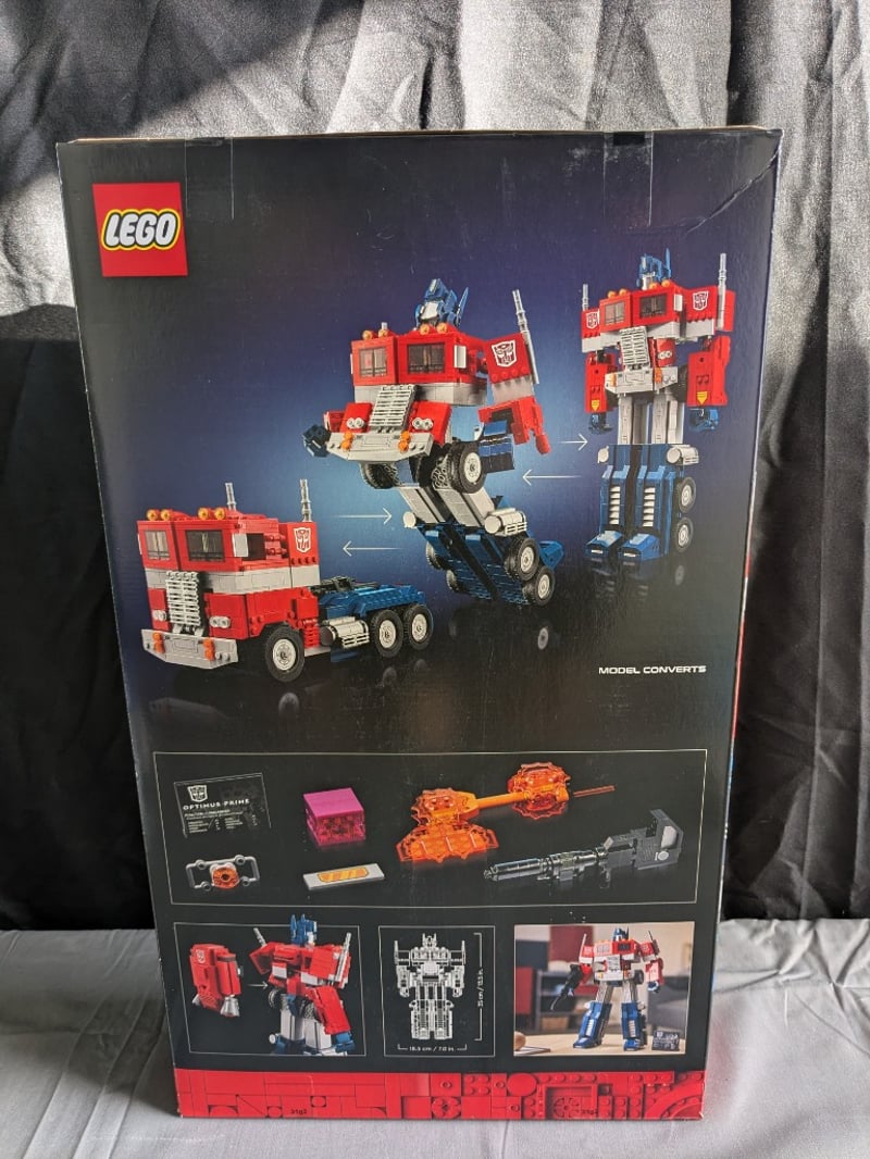 LEGO TRANSFORMERS OPTIMUS PRIME SET 10302Lego Transformers Optimus Prime (Set 10302) Featuring 1508 Pieces With Full Transformation Capability From Truck To Robot Form. Includes Detailed Articulation, Weapons Accessories, And Authentic Autobot Insignia. Age 18+Condition: Good - Refer To Images584572+28