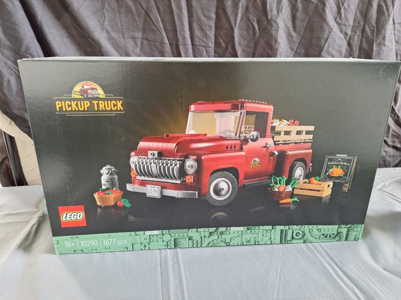 LEGO PICKUP TRUCK SET 10290 - VINTAGE FARM VEHICLE DISPLAY MODELLego Creator Expert Pickup Truck Set 10290 Featuring 1677 Pieces. Red Vintage-Style Pickup Truck With Detailed Grille, Functional Bed With Removable Wooden Crate, Opening Cab Doors, And Working Steering.Condition: Good - Refer To Images584572+67