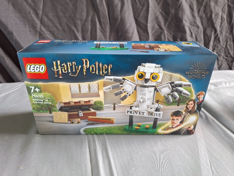 LEGO HARRY POTTER 76425 HEDWIG AT PRIVET DRIVE SETLego Harry Potter Set 76425 Featuring Buildable Hedwig Owl Figure With Poseable Wings And Articulated Limbs, Privet Drive House Facade With Yellow Door And Window Details, Mailbox With "Privet Drive" Nameplate, Brown Treasure Chest, Wand Accessory, And Minifigure Character Elements. Age 7+ Rated Set From The Wizarding World Collection.Condition: Good - Refer To Images584572+74
