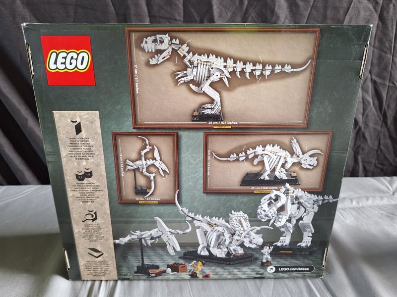 LEGO IDEAS DINOSAUR FOSSILS SET 21320Lego Ideas Set 21320 Featuring Buildable Dinosaur Skeleton Fossils Including T-Rex, Triceratops, And Pteranodon With Minifigure Paleontologist. Includes Display Stands And Educational Placard. Age 16+.Condition: Good - Refer To Images584572+93