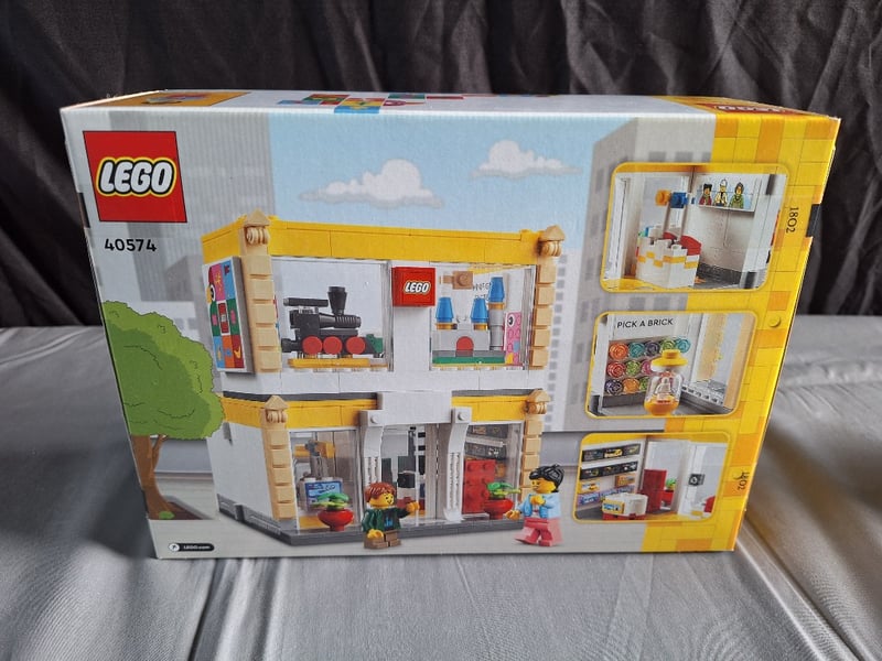 LEGO SET 40574 - DOWNTOWN LEGO STORE BUILDINGLego Set 40574 Downtown Lego Store, A Modular Building Set For Ages 9+, Featuring A Detailed Two-Storey Retail Structure With Yellow Framework, Multiple Shop Windows Displaying Lego Products, Minifigures, And Accessories. The Set Includes A "Pick A Brick" Wall Section, Functional Doors, And Detailed Interior Spaces. Presented In Original Retail Packaging With Comprehensive Instruction Materials Visible.Condition: Good - Refer To Images584572+98