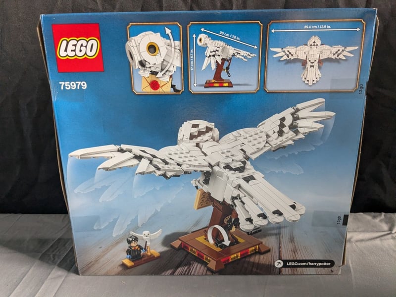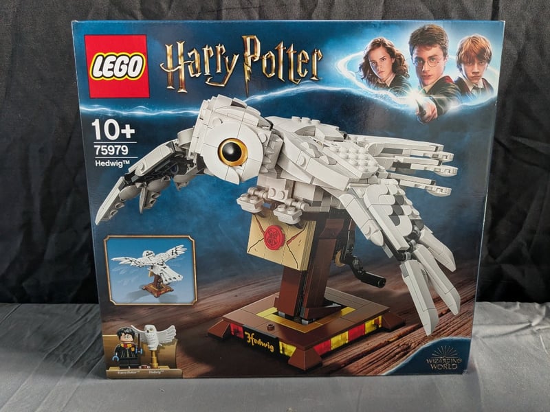 LEGO HARRY POTTER HEDWIG SET 75979Lego Harry Potter Hedwig (Set 75979) - A Detailed Buildable Model Of Hedwig, Harry Potter'S Iconic Snowy Owl. Features Articulated Wings, Poseable Head With Golden Eye Detail, And Includes A Minifigure Of Harry Potter With Wand And Printed Hogwarts Letter Accessory. Mounted On A Decorative Hogwarts-Themed Display Base. Recommended For Ages 10+. Complete With Original Packaging Showing Multiple Build Configurations And Display Angles.Condition: Good - Refer To Images584572+102