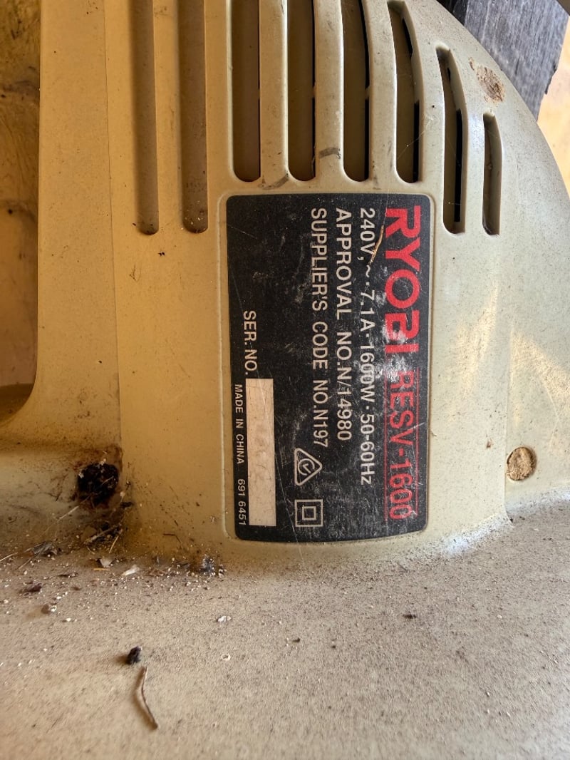 Electric Blower, Ryobi, RESV-1600, 240v, 1600W, 50-60 HZ, Includes extension cord.Note: Item untestedSold as lot