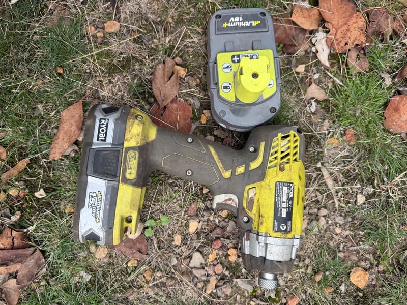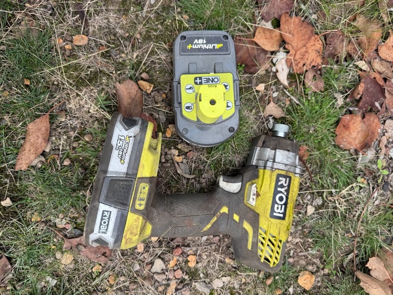 Drill and Battery's, Ryobi, RID1801, RB18L, RB18L25Sold as lotNote: Item Untested